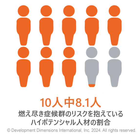 しかし、私たちが1,000人以上のハイポテンシャル人材を対象に行った調査では、実に81%が「仕事終わりには疲れ果てている」と回答しています。この割合は、他の層と比べて最も高く、特に女性においては、より深刻な燃え尽きの傾向が見られます。